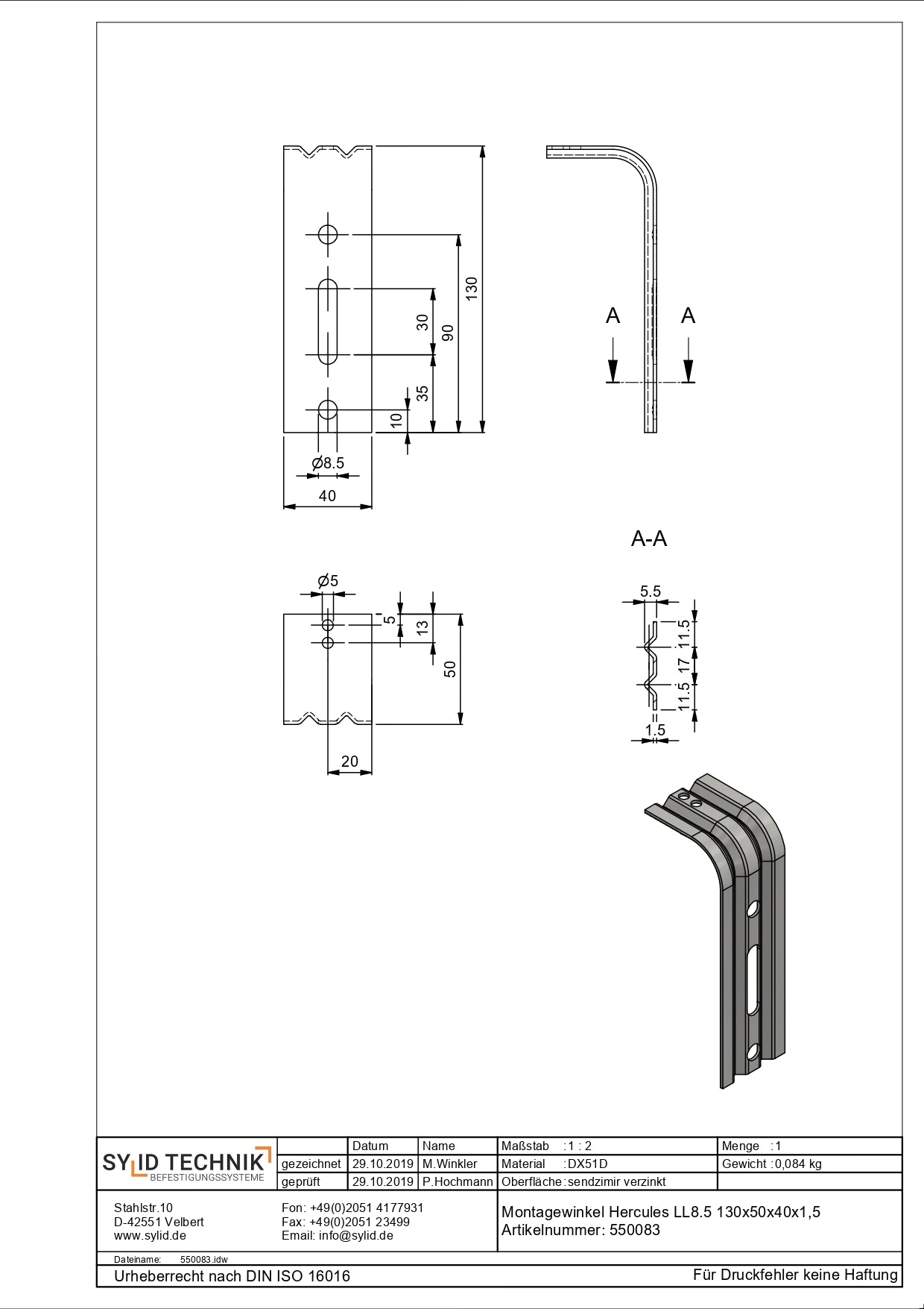Werkstoff: Stahl (DX51D+Z150MAC)