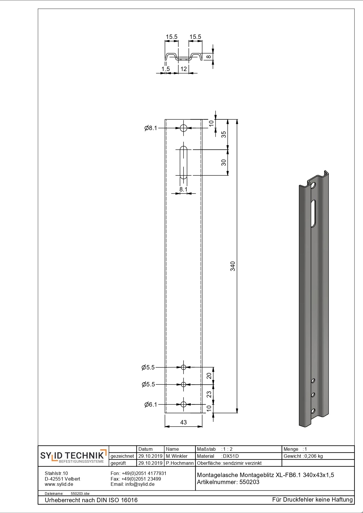Montagelasche Montageblitz XL-FB6.1 340x43x1,5 / 100 Stück (VE)