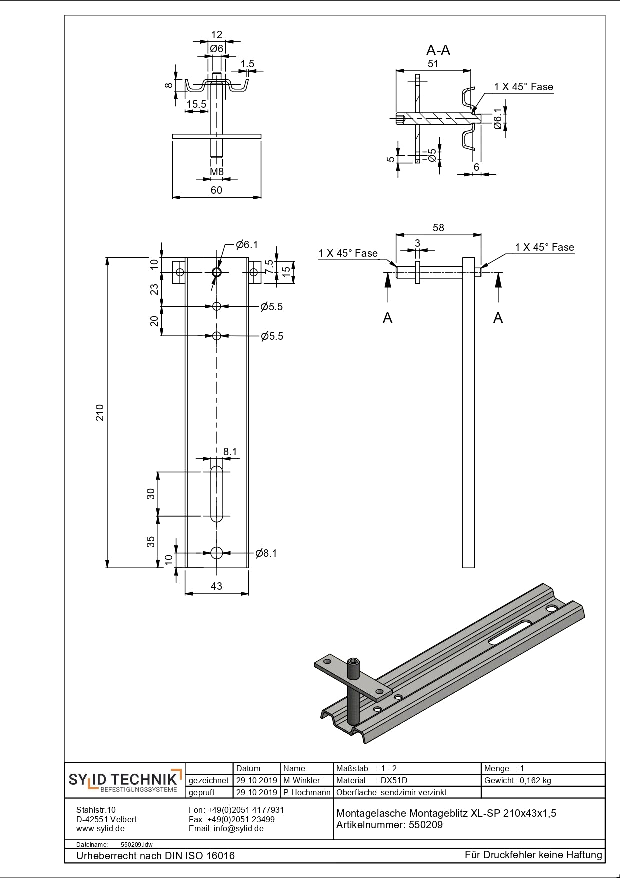 Montagelasche Montageblitz XL-SP 210x43x1,5 / 50 Stück (VE)