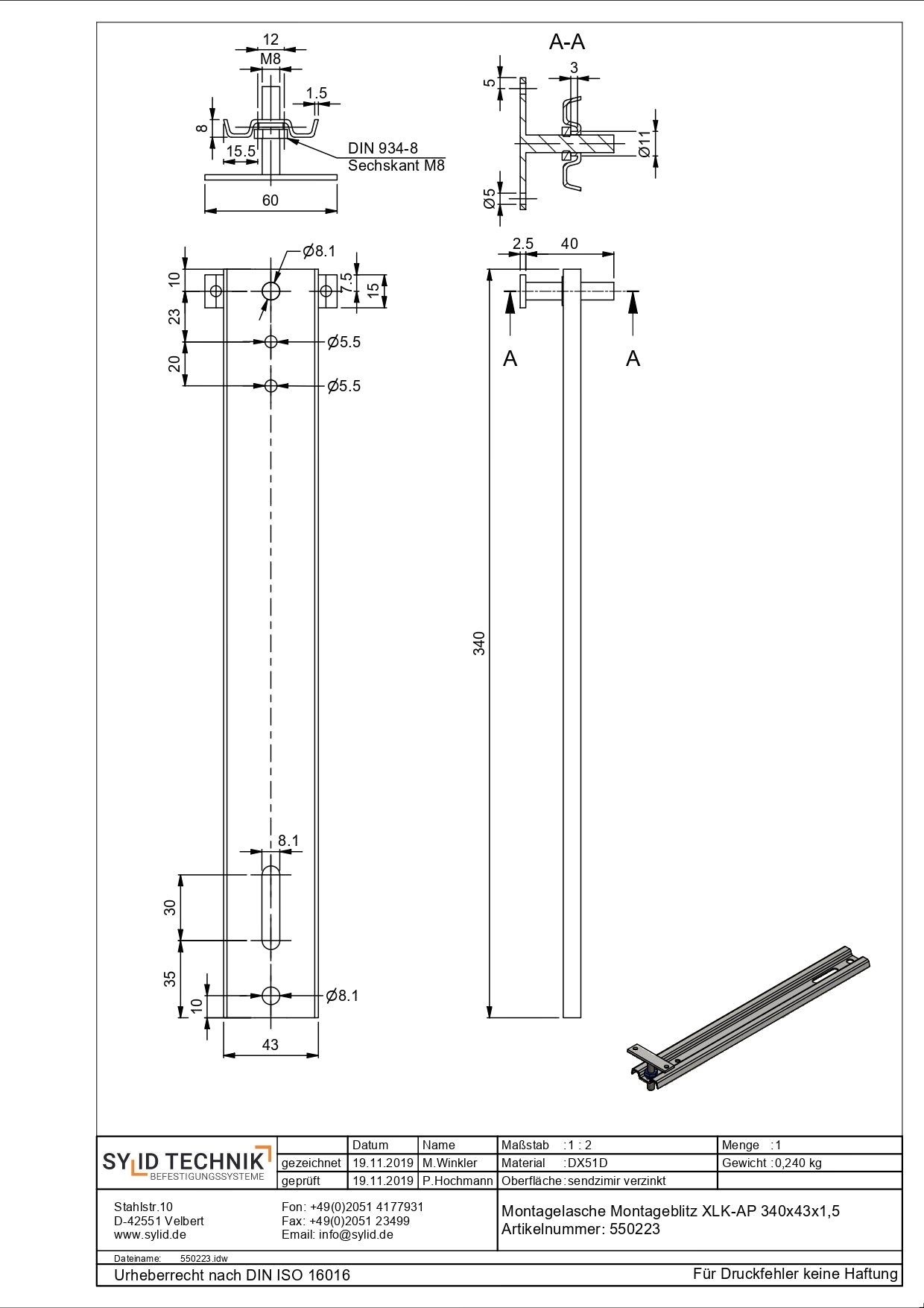 Montagelasche Montageblitz XLK-AP 340x43x1,5 / 50 Stück (VE)