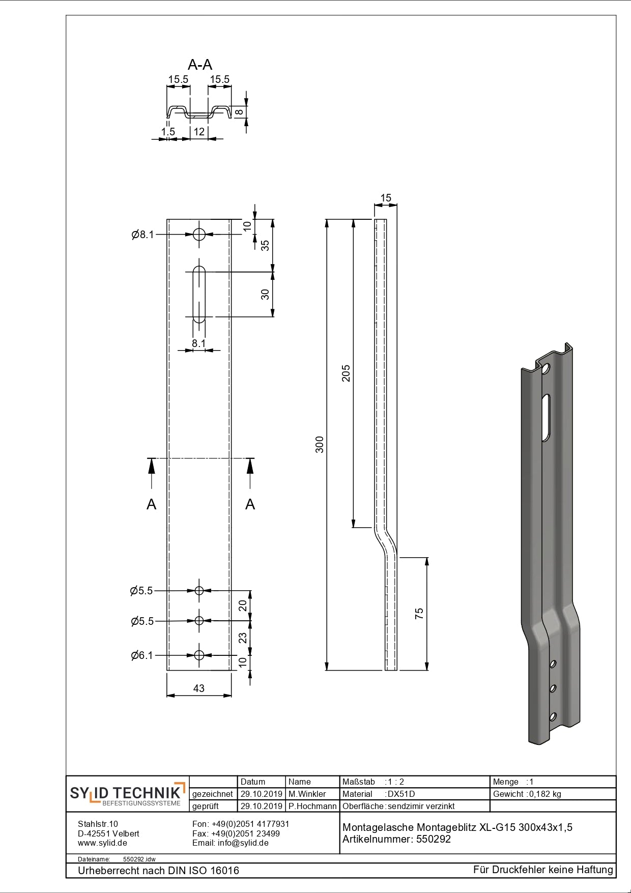 Montagelasche Montageblitz XL-G15 300x43x1,5 / 100 Stück (VE)