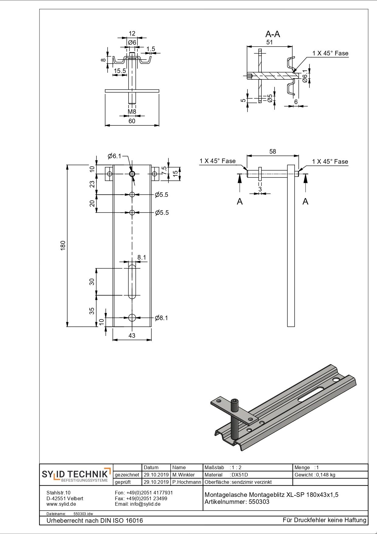 Werkstoff: Stahl (DX51D+Z150MAC)